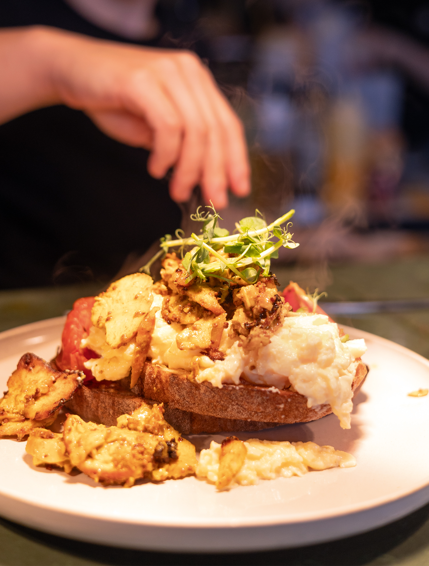 Gary’s mushrooms are cooked down, mashed with garlic and onion before being grilled and cut into soldiers, covered in Parmesan and added to eggs with sourdough and a ramekin of hollandaise. They’re now one of the most asked for items.