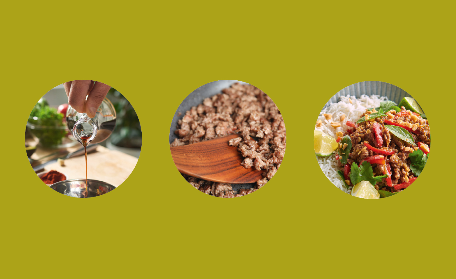 Combine Kikkoman Gluten-free Soy Sauce, oyster sauce, fish sauce, lime juice, palm sugar, beef stock and cornflour.