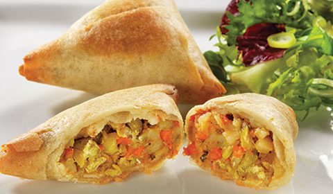 Vegetable samosas and onion bhajis are also available as 20g or 50g pieces and come in 1 x 2 kg packs that contain approximately 100 20g pieces or 40 50g pieces. They are both oven baked at 200C for 10 minutes. Vegetable pakoras come in 1 x 2kg with 100 pieces per box and can be cooked at 200C for 10-12 minutes or fried 170C for two minutes. Spring rolls come in 1 x 2kg packs and have approximately 100 pieces per box. They can be oven baked at 210C for 10-12 minutes or fried at 170C for 2-3 minutes.