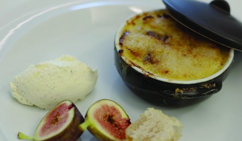 Glazed Date & Brandy Bread & Butter Pudding with Vanilla Bean Cream