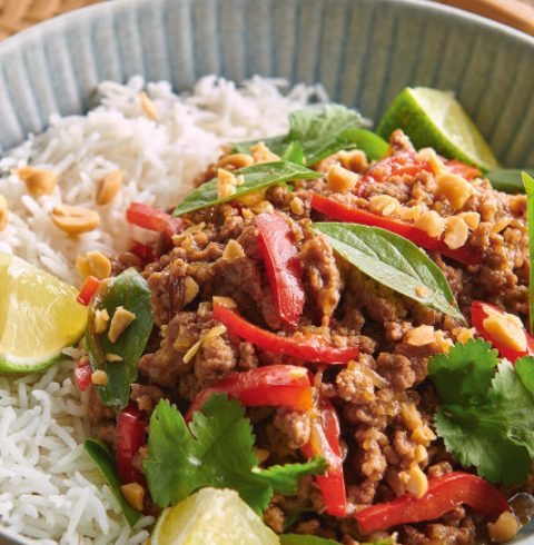 Quick Thai basil beef stir-fry with peanuts and jasmine rice