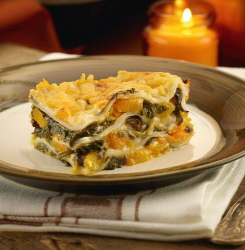 - Build your lasagne in a lightly greased ovenproof dish, starting with a thin layer of pumpkin and spinach sauce, followed by lasagne sheets and then again with the sauce. Repeat until all ingredients are used.