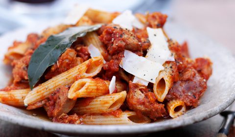 - Cover and simmer for an hour. Note: the parmesan rind will give the ragu extra depth of flavour - remove before serving