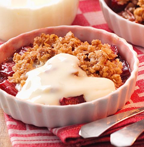 Grate the zest of 1 orange into the rhubarb and pear mixture in step 2. Garnish with finely chopped crystallised stem ginger and serve with ice cream (made with Bird’s ice cream mix).