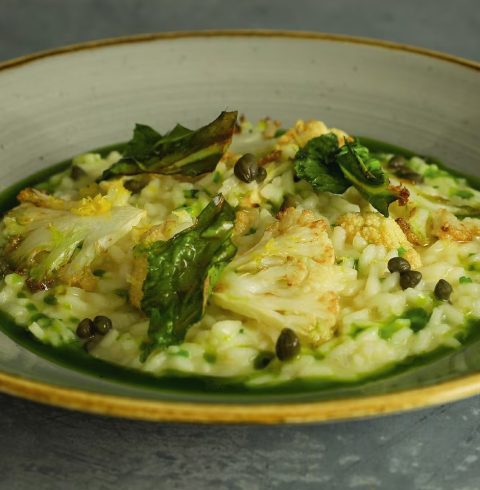 Comforting with punchy flavours, this lemon risotto combines roasted cauliflower florets and crisp leaves, gently folded into a creamy, perfectly al dente risotto base. Tangy capers add bursts of flavour, while Parmesan enriches the dish with subtle savoury depth. Finished with a bright citrus note, it balances texture, acidity and richness, making it a refined, visually striking addition to any elevated menu.