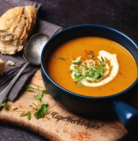 - In a large saucepan over a medium heat, sweat the onions, leeks and carrots without colouring. Once softened, stir in the remaining 50g of the Cape Herb & Spice Caribbean Jerk Rub and cook gently for 1–2 mins to release flavour.